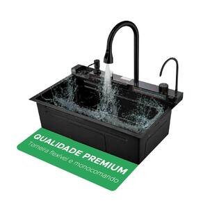 Ela possui um sistema de cascata para lavar copos com facilidade e eficiência, evitando desperdício de água e garantindo uma limpeza perfeita. Ela também conta com um bico móvel que permite direcionar o jato de água para onde você precisar, além de um arejador que proporciona uma saída de água suave e uniforme.