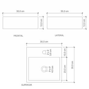 Características Gerais do Produto: - Altura: 26 cm - Garantia: Garantia de fábrica 3 meses - Largura: 35 cm - Marca: Venturi - Material da Cuba: Cuba em Pedra Ardósia com Pintura PU - Montagem Necessária?: Não - Peso: 13 kg - Profundidade: 35 cm - Tipo de Instalação: De Sobrepor