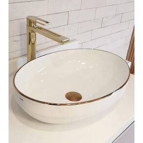 A escolha perfeita para elevar o estilo do seu banheiro Esta cuba cerâmica branca, com acabamento brilhante, apresenta um design oval com bordas finas e elegantes, conferindo sofisticação ao ambiente. Destaque para as bordas delicadamente contornadas por uma linha rose gold, adicionando um toque de luxo e exclusividade.
