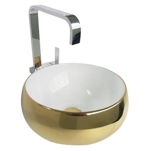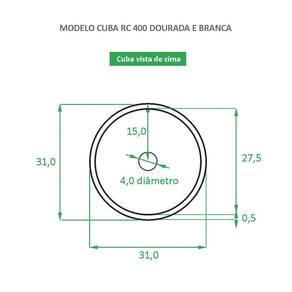 Cuba de Apoio Cerâmica Reno RC 400 - Branca e Dourada.