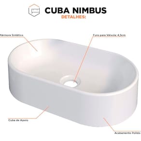 Cuba de Apoio Nimbus Branco da Cozimax: fabricada em mármore sintético, oferece design moderno e sofisticado, ideal para valorizar o banheiro. Acabamento liso e fácil de limpar, perfeita para um toque de elegância.