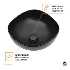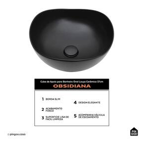 A Cuba de Apoio para Banheiro Oval Louça Cerâmica 37cm Obsidiana da Pingoo.casa - Preto combina sofisticação e praticidade para banheiros e lavabos.