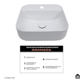 A Cuba de Apoio Quadrada Cerâmica Granada da Pingoo.casa oferece sofisticação e praticidade para o seu banheiro ou lavabo.