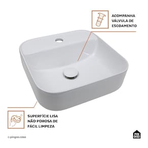 Conteúdo da embalagem : 1 Cuba de Apoio para Banheiro 1 Válvula de Escoamento Parafusos e Ganchos para fixação