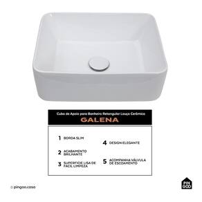 A Cuba de Apoio para Banheiro Retangular Louça Cerâmica Galena da Pingoo.casa - Branco é a escolha ideal para quem busca unir sofisticação e funcionalidade no banheiro ou lavabo.