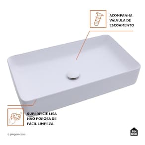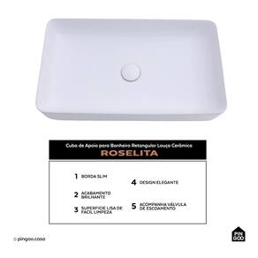 A Cuba de Apoio para Banheiro Retangular Louça Cerâmica Roselita da Pingoo.casa oferece sofisticação e praticidade para o seu banheiro ou lavabo. Com um design retangular em louça cerâmica de excelente qualidade, ela se adapta a diferentes estilos de decoração, trazendo um toque contemporâneo e elegante ao ambiente.