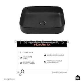 Marca: Pingoo.casa Medidas: Verificar imagens do anúncio Material Predominante: Cerâmica Acabamento: Fosco Aplicação: Apoio Posição da Válvula: Centralizada Furação da Torneira: Não se aplica Válvula Escape/Ladrão: Não Indicação: Banheiro ou Lavabo
