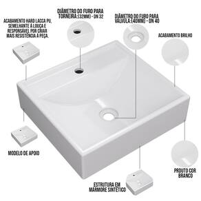 Estrutura em Mármore Sintético com acabamento Hard Lacca PU, semelhante a louça e responsável por criar mais resistência a peça.