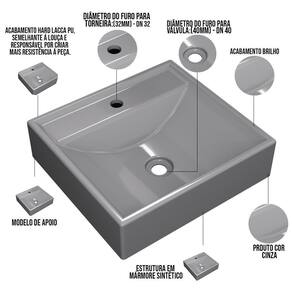 Cuba De Apoio Quadrada Para Banheiro Lavabo C01 Q39w Cinza - Lyam Decor Seu banheiro de cara nova! Hoje, incrivelmente um dos locais da casa onde mais pedem decoração é o banheiro ou lavabo. Aqui apresentamos a você uma cuba elegante e de um escoamento de água excelente para proporcionar mais comodidade e versatilidade para os usuários do lavatório. Além de enriquecer o visual do seu banheiro, determina a funcionalidade do mesmo. Vale ressaltar que as torneiras mais indicadas para este tipo de cuba são as de parede ou de bica alta, e exige também uma bancada com espaço superior suficiente para abrigar a mesma, junto com os outros adornos de banheiro que você desejar. Ideal para fazer parte do seu sonho! Dimensões da Cuba (L x A x P) 40 x 10 x 37,5 cm Características: Estrutura em Mármore Sintético com acabamento Hard Lacca PU, semelhante a louça e responsável por criar mais resistência a peça. Acabamento Brilho. Furação da Cuba: Válvula Universal 7/8 (32mm) 11/4 (40mm). Formato: Quadrada. Modelo: Apoio. Importante: O produto é enviado montado, requerendo apenas instalação por parte do cliente. Recomendação de Limpeza: Recomenda-se lavagem do produto com bucha apenas do lado amarelo e detergente neutro. Observações importantes: - Produto para residencial em ambiente interno, não devendo ficar exposto diretamente ao sol, calor e umidade excessivos. - Pode haver alguma diferença de tonalidade entre a imagem e o produto real, por conta do tratamento de imagens e a calibração de cores do seu monitor. - As imagens são meramente ilustrativas, não acompanham objetos de decoração e eletrônicos. - Ao receber a mercadoria, o cliente deve verificar as condições da embalagem, caso haja alguma não assine o de . - Montagem, desmontagem e outras instalações serão de responsabilidade do cliente. Não nos responsabilizamos, no ato da , por subir escadas/elevadores ou pelo por guincho em apartamentos. Eventuais despesas são de responsabilidade do comprador. - Confira as dimensões do produto e certifique-se de que passará normalmente por supostos elevadores, portas, escadas e/ou corredores de sua residência. NA