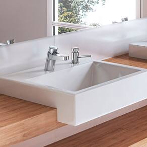 - Possui formas perfeitas para uma estética moderna e elegante, como as bordas infinitas nas cubas, bacias carenadas e produtos livres de emendas;