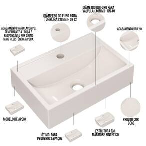 Cuba De Apoio Retangular Para Banheiro Lavabo C01 Q450 Bege - Lyam Decor Seu banheiro de cara nova! Hoje, incrivelmente um dos locais da casa onde mais pedem decoração é o banheiro ou lavabo. Aqui apresentamos a você uma cuba elegante e de um escoamento de água excelente para proporcionar mais comodidade e versatilidade para os usuários do lavatório. Além de enriquecer o visual do seu banheiro, determina a funcionalidade do mesmo. Vale ressaltar que as torneiras mais indicadas para este tipo de cuba são as de parede ou de bica alta, e exige também uma bancada com espaço superior suficiente para abrigar a mesma, junto com os outros adornos de banheiro que você desejar. Ideal para fazer parte do seu sonho! Dimensões da Cuba (L x A x P) 44,5 x 10,5 x 30,5 cm Características: Estrutura em Mármore Sintético com acabamento Hard Lacca PU, semelhante a louça e responsável por criar mais resistência a peça. Acabamento Brilho. Furação da Cuba: Válvula Universal 7/8 (32mm) 11/4 (40mm). Formato: Retangular. Modelo: Apoio. Importante: O produto é montado, requerendo apenas instalação por parte do cliente. Recomendação de Limpeza: Recomenda-se lavagem do produto com bucha apenas do lado amarelo e detergente neutro. Observações importantes: - Produto para residencial em ambiente interno, não devendo ficar exposto diretamente ao sol, calor e umidade excessivos. - Pode haver alguma diferença de tonalidade entre a imagem e o produto real, por conta do tratamento de imagens e a calibração de cores do seu monitor. - As imagens são meramente ilustrativas, não acompanham objetos de decoração e eletrônicos. - - . - Confira as dimensões do produto e certifique-se de que passará normalmente por supostos elevadores, portas, escadas e/ou corredores de sua residência. NA