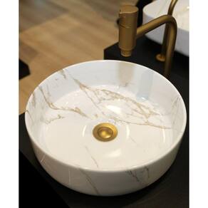 As cubas de apoio Sotille redondas são decorativas e sofisticadas. As peças possuem a borda fina, design diferenciado e efeitos marmorizados incriveis, além da cor preto fosco que está super em alta no segmento de decoração Acompanha Manual de Instalação: Não Acompanha Torneira: Não Altura: 11.5 Ambiente Principal: Banheiro Comprimento: 36 Cor: Branco Cor do Produto: Branco Itens Inclusos: 1 Cuba Largura: 36 Material Principal: Cerâmica Origem do Produto: Importado Peso: 5 Possui furação para torneira: Não Possui ladrão: Não