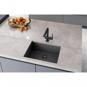 A CUBA QUADRATINO 500 em aço inox de 1.0 mm, tem a profundidade de 200 mm, com acabamento black matte. Possui cantos internos levemente arredondados (raio de 10 graus), que não acumulam sujeira e facilitam a limpeza. A QUADRATINO 500 resulta em alto padrão de beleza para uma cozinha, refinada e moderna, um objeto de desejo para composição de ambientes sofisticados.