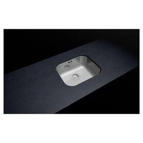 Produto: Cuba com bordas lisas para instalação por baixo da bancada e 17 cm de profundidade. Opcionalmente são oferecidos acessórios como, tábua em madeira, grade aramada, bandeja perfurada e cesta quadrada.