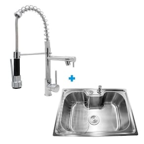 Cuba de Inox com Torneira Monocomando Gourmet Cromada 8024 Especificações: Torneira Monocomando Gourmet CromadaMaterial Predominante: Metal Latão, Liga de Cobre e Zinco Gatilho em ABSDuas Saídas de Água Chuveirinho Spray e Torneira RetaTorneira Reta com cartucho 1/4 de VoltaCartuchos Em Cerâmica Flexível de Inox para Altas Temperaturas Pressão Mínima: 3 mca Metros de Coluna D'ÁguaPressão Recomendada: 5 mca Metros de Coluna D'ÁguaPressão Máxima: 40 mca Metros de Coluna D'ÁguaFuração de Bancada: 35 mmFlexível de longo alcanceAltura Total: 50 cmEntrada para Dois FlexíveisÁgua Quente e Fria ou Água Fria Para Uso Exclusivo de Água Fria, Necessário a Utilização de Adaptador T Não Incluso Aceita Todos os tipos de Aquecedores Itens Inclusos:1 Torneira Monocomando Gourmet Cromada2 Flexíveis para Ligação de Água Quente e Fria Cuba Aço Inox + AcessóriosCuba Inox Pia Cozinha Gourmet Luxo EscovadaMaterial: Aço Inox 201Acabamento: Aço Escovado AcetinadoProduto de Alta Qualidade e LuxoFixação: De Embutir ou SobreporPossui Furação para Dispenser de Sabão e Torneira com seus Respectivos Tampões, caso não Utilize algum delesPossui Pintura Externa e Manta Emborrachada abaixo da Cuba Contra RuídosUtiliza Válvula de 41/2Dimensões do Produto: Vide última imagem DispenserPode ser utilizado com sabonete liquido e detergenteFácil abastecimento pela parte superior sem a necessidade da retirada do recipiente inferiorMaterial do Dosador: Dosador em Aço EscovadoMaterial do Recipiente: Plástico injetadoTipo de Instalação: De BancadaIndicado para: Cozinhas, Espaços Gourmet e ChurrasqueirasDiâmetro da base: 5 cmTamanho da furação para instalação: 2,5 cmCapacidade do Recipiente: 300ml Válvula de Pia AmericanaVálvula de 41/2Válvula de EscoamentoÓtima QualidadeFácil Instalação Escorredor de PratosCesto Aramado com Escorredor de Pratos para Cubas de Inox Produto em MetalIndicado para Uso em Cubas de InoxFixação: Encaixe Itens Inclusos:1 Torneira Monocomando Gourmet Cromada 50 Cm2 Flexíveis para Conexão de Água Quente e Fria1 Porca de Fixação1 Cuba de Aço Inox 3041 Escorredor de Pratos1 Dispenser Aço Escovado1 Válvula 11/41 Sifão em Abs para Ligação da Válvula no Cano