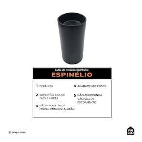 Além de seu visual imponente, a Cuba Espinélio oferece alta durabilidade e fácil manutenção, com acabamento resistente que evita manchas e facilita a limpeza, preservando a estética da peça por mais tempo, possui saída de escoamento centralizada e é compatível com válvula de 1" 1/4 (não inclusa), sendo uma excelente escolha para quem busca funcionalidade com estilo no uso diário.