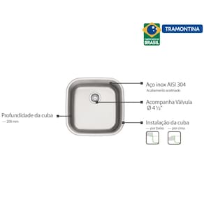Para manter o brilho da sua cuba, recomendamos o uso da pasta para polir e remover manchas em superfícies de aço inoxidável "Tramontina".