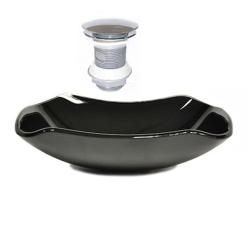 Cuba de vidro abaulada 45cm preto + valvula click as nossas cubas de vidro são ideais para projetos de decoração em banheiros com alto padrão e bom gosto, pois proporcionam um efeito moderno e único ao ambiente,são instaladas sobre a bancada e por isso realçam com destaque o acabamento do seu banheiro, sem contar a eficiência e praticidade que se leva para a sua casa. O vidro é pintados com tinta de alta performance, o que lhe garante a permanência da cor. Dados técnicos formato: retangular abaulada material: vidro instalação: apoio ou sobrepor dimensões: 45x29x14cm comprimento x profundidade x altura espessura: 10mm