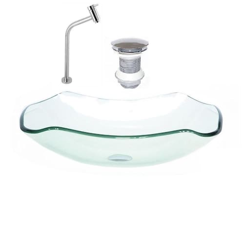 Cuba de vidro abaulada 51cm incolor + valvula + torneira as nossas cubas de vidro são ideais para projetos de decoração em banheiros com alto padrão e bom gosto, pois proporcionam um efeito moderno e único ao ambiente,são instaladas sobre a bancada e por isso realçam com destaque o acabamento do seu banheiro, sem contar a eficiência e praticidade que se leva para a sua casa. O vidro é pintados com tinta de alta performance, o que lhe garante a permanência da cor. Dados técnicos