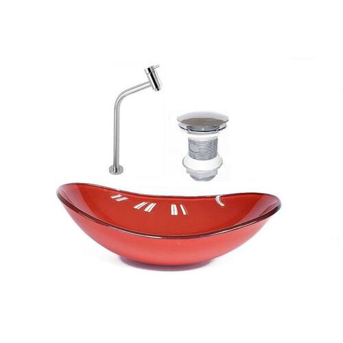 Cuba de vidro oval 55cm vermelho ferrari + valvula click + torneira metal as nossas cubas de vidro são ideais para projetos de decoração em banheiros com alto padrão e bom gosto, pois proporcionam um efeito moderno e único ao ambiente, são instaladas sobre a bancada e por isso realçam com destaque o acabamento do seu banheiro, sem contar a eficiência e praticidade que se leva para a sua casa. O vidro é pintados com tinta de alta performance o que lhe garante a permanência da cor. Na compra deste super combo 3 em 1, você compra de uma só vez, a cuba oval, válvula click e a torneira de metal, de forma mais fácil, mais rápido e mais barato. Dados técnicos da cuba: formato: oval; material: vidro; instalação: apoio ou sobrepor; dimensões: 55x37x17cm comprimento x profundidade x altura ; espessura: 12mm. Dados técnicos da válvula: formato: redonda; material: polipropileno; instalação: cubas, tanques e lavatórios; diâmetro: 1. 1/4 polegadas. Dados técnicos da torneira: material: liga metálica cromada; conexão de entrada: 1/2 polegada -1/4 volta; altura total da torneira: 37 cm; altura da queda dágua: 27 cm. Garantia: 12 meses conforme política de troca e devoluções . Atenção: preço referente a cuba, válvula click e torneira de metal cromada. Montagem: montagem e instalação não inclusa na venda ou preço do produto, elas são de inteira responsabilidade do cliente. Imagens ilustrativas.