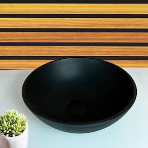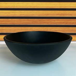 Cuba de vidro redonda 30cm preto fosco As cubas de vidro oferecem funcionalidade, resistência e modernidade. Perfeitas para complementar de forma sofisticada o ambiente do seu banheiro e/ou lavabo. Produto ideal para espaços amplos como para ambientes menores, garantindo uma maior eficiência do espaço com graça e leveza. Altura : 13cm Comprimento : 31cm Profundidade : 31cm Espessura : 8mm Material : vidro temperado Modelo: apoio Furo saída de água : 4cm Formato : redonda Montagem: montagem e instalação não inclusa na venda ou preço do produto, elas são de inteira responsabilidade do cliente. Atenção: preço referente somente a cuba, não acompanha torneira, válvula click e nem sifão. Imagens ilustrativas.