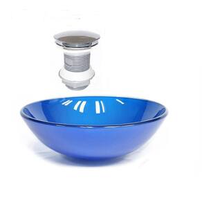 Cuba de vidro redonda 31cm azul escuro + válvula click as nossas cubas de vidro são ideais para projetos de decoração em banheiros com alto padrão e bom gosto, pois proporcionam um efeito moderno e único ao ambiente, são instaladas sobre a bancada e por isso realçam com destaque o acabamento do seu banheiro, sem contar a eficiência e praticidade que se leva para a sua casa. O vidro é pintados com tinta de alta performance o que lhe garante a permanência da cor. Na compra deste super combo 2 em 1, você compra de uma só vez, a cuba redonda e a válvula click de forma mais fácil, mais rápido e mais barato. Dados técnicos da cuba