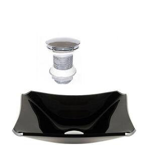 Cuba de vidro retangular chanfrada 37cm preto + válvula click