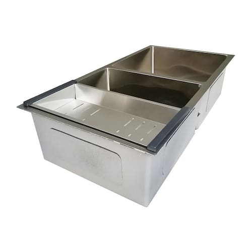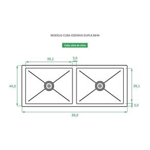 Cuba de cozinha dupla Gourmet em inox 304, completa com todos os acessórios necessários para instalação. Pode ser instalada de duas formas: embutida, sob a bancada, ou sobrepor, com as bordas sobre a pedra. Possui bordas de 3 mm reforçadas, garantindo maior resistência e durabilidade, além de isolamento acústico com pads de borracha, que reduzem o ruído da água. O design moderno e elegante combina com qualquer estilo de cozinha, enquanto a profundidade ideal das cubas permite lavar grandes panelas e utensílios com facilidade. Além disso, a cuba é resistente a impactos e altas temperaturas, oferecendo segurança e longa durabilidade. Uma cuba sofisticada e premium, perfeita para quem busca praticidade, beleza e qualidade em um único produto, transformando sua cozinha em um ambiente funcional e de alto padrão. Características Instalação: Embutir ou Sobrepor Cuba: Retangular Material: Aço Inox AISI 304 o melhor tipo de aço contra corrosão Espessura: 3 mm - cuba mais resistente Acabamento: Escovado Cor: Prata Dimensões Externas: 86 x 44 cm Dimensões Internas de cada cuba: 2 cubas com 39,2 x 39,1 cm Profundidade da cuba: 20 cm Possui PADs de borracha na parte inferior e nas laterais para minimizar o ruído durante o uso Acessórios inclusos: 2 Válvulas 4 1/2 1 Cesto Escorredor Ajustável em Aço Inox; 1 Dosador de Sabão em Inox Escovado, capacidade de 300ml; 1 Dreno para o ladrão; 1 Tubulação com joelho para ligação do ladrão e sifão; de 1 ano na cuba contra defeitos de fabricação e 3 meses nos acessórios. Dúvidas a Banho&Casa está à disposição para atendê-los. Marca: Não Informado Ean: 7891528981482