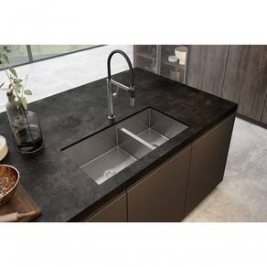 - Modelo com duas cubas, sendo uma principal e outra auxiliar, ideal para quem deseja a cuba principal livre para tarefas diárias.