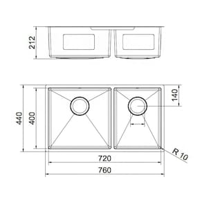 - 1 Cuba Dupla Docol Bistrô 2 Válvulas de saída d'água 4 1/2" 1 Sifão Duplo Extensível 72cm 1 Manual(gabarito