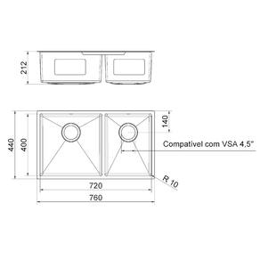 Cuba Dupla Docol Bistro 76x44 cm – Aço Inox EscovadoA Cuba Dupla Docol Bistro 76x44 cm une sofisticação e funcionalidade para transformar sua cozinha. Produzida em aço inoxidável 304 com acabamento escovado, oferece alta resistência à corrosão e um design moderno. Seu formato reto, com cantos ligeiramente arredondados, facilita a limpeza sem comprometer a estética. Além disso, a cuba conta com manta antirruído, reduzindo o som do impacto da água – um diferencial essencial para ambientes open space. A instalação é versátil, podendo ser feita tanto embutida (undermount) quanto sobreposta (topmount), se adaptando perfeitamente ao seu projeto.Acompanha o produto:- Manual e gabarito de instalação - Duas válvulas de saída d’água (4.5”) - Sifão duplo extensível (72 cm) Garanta já a sua e leve elegância e praticidade para sua cozinha! Ean: 7891461662004