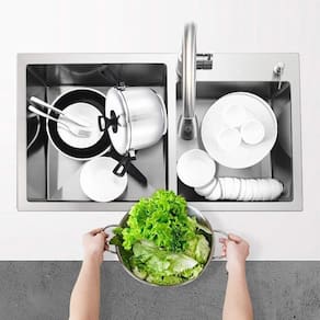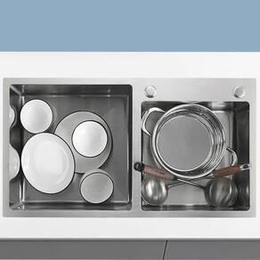 A Cuba de cozinha gourmet dupla produzida em Aço Inox 201, que garante durabilidade e resistência. Equipada com sistema anti ruído, que garante uma experiência tranquila enquanto você prepara suas refeições favoritas.