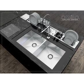Cuba gourmet de embutir; Possibilidade de instalar triturador na mesma furação da válvula; Cuba ampla e versátil; Possui Anti ruído (aplicação de PAD especial na parte inferior e lateral externa da cuba, essa aplicação reduz o som causado pelo contato da água na cuba).