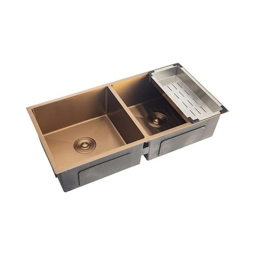 Material Premium Aço Inox 304 Fundo ligeiramente inclinado de 5 graus Profundidade para otimização de espaço Dreno recuado para obter mais espaço livre abaixo da pia Linhas de sulcos em forma de X para facilitar escoamento Almofadas de borracha grossas anti-ruído Revestimento em tinta de alta qualidade