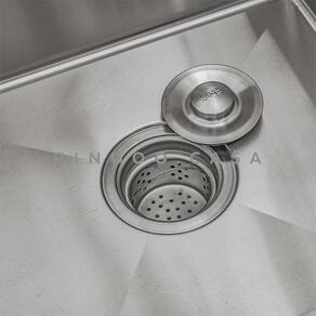 Material Premium Aço Inox 304 Fundo ligeiramente inclinado de 5 graus Profundidade para otimização de espaço Dreno recuado para obter mais espaço livre abaixo da pia Linhas de sulcos em forma de X para facilitar escoamento Almofadas de borracha grossas anti-ruído Revestimento em tinta de alta qualidade