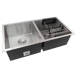 Cuba Dupla Quadrada Inox 304 Cozinha Pia Embutir Sobrepor Gourmet 8840 Premium com Acessórios