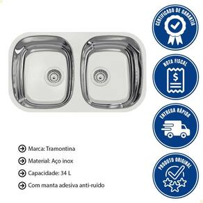 - Eleve sua cozinha com a Cuba Tramontina Isis 2C 34 BL 72x40 cm em Aço Inox Alto Brilho.
