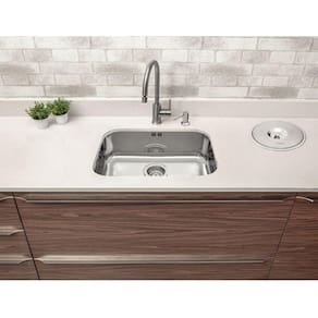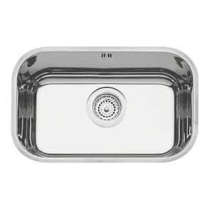 Produto: Cuba com bordas lisas para instalação por baixo da bancada e 17 cm de profundidade. Opcionalmente é oferecido como acessório a grade aramada para o fundo da cuba.