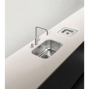 Produto: Cuba com bordas lisas para instalação por baixo da bancada e 17 cm de profundidade. Opcionalmente é oferecido como acessório a grade aramada para o fundo da cuba.