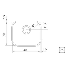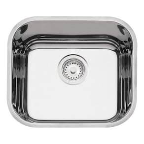 Produto: Cuba com bordas lisas para instalação por baixo da bancada e 17 cm de profundidade. Opcionalmente são oferecidos acessórios como, tábua em madeira, grade aramada, bandeja perfurada e cesta quadrada.