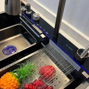 Equipado com um sistema antirruído e um fundo em formato de X para melhor drenagem, proporcionando uma experiência silenciosa e prática. Ideal para cozinhas, bares ou varandas, é espaçosa e evita que o som do fluxo de água ecoe, promovendo um ambiente mais tranquilo e organizado.