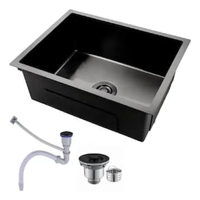 Cuba preta 60x45 gourmet com acessórios: acabamento escovado, ampla e perfeita para uma cozinha moderna.