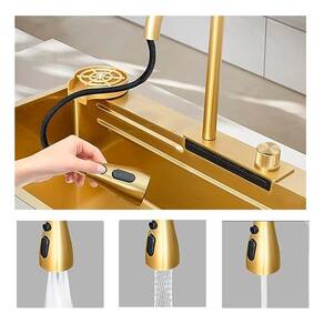 Marca: Brinovar Medidas: 78 X 45 X 23 cm LxPxA Material: Aço inoxidável 304 Espessura externa: 3 mm Aplicação: Embutir ou Sobrepor Furação da Torneira: Já vem embutida Furação do dosador: 2,8 cm Furação do lavador de copos: 2,8 cm Furação da Válvula: 4.1/2 Válvula Escape/Ladrão: Sim Capacidade do dispenser detergente: 300ml Indicação: Cozinha, Churrasqueira Aceita Triturador: Sim Anti-ruído: Sim Acompanha Acessórios: Sim Cor: Dourada Marca: Não Informado