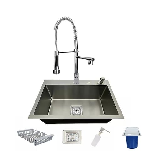 - 1 Válvula de escoamento - 1 Torneira monocomando - 1 Lixeira Aço inox 5Lt - 1 Válvula e tubulação do ladrão - 1 Cesto escorredor - 1 Dosador de detergente 500ml.