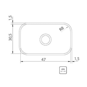 Produto Cuba com bordas lisas para instalação por baixo da bancada e 17 cm de profundidade. Opcionalmente é oferecido como acessório a grade aramada para o fundo da cuba.