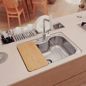 O modelo Undermount proporciona uma integração perfeita com a bancada, criando uma aparência limpa e moderna. O acabamento acetinado e as linhas elegantes se adaptam a diversos estilos de decoração, elevando o nível de sofisticação da sua cozinha.