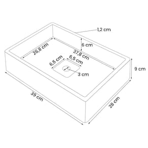 Transforme seu banheiro em um espaço moderno e acolhedor com esta cuba retangular em cimento com ralo oculto.