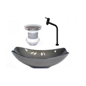 Cuba oval chanfrada 46cm grafite + valvula + torneira preta as nossas cubas de vidro são ideais para projetos de decoração em banheiros com alto padrão e bom gosto, pois proporcionam um efeito moderno e único ao ambiente, são instaladas sobre a bancada e por isso realçam com destaque o acabamento do seu banheiro, sem contar a eficiência e praticidade que se leva para a sua casa. O vidro é pintados com tinta de alta performance, o que lhe garante a permanência da cor. Na compra deste super combo 3 em 1, você compra de uma só vez, a cuba oval chanfrada, válvula click e a torneira de metal preta, de forma mais fácil, mais rápido e mais barato. Dados técnicos da cuba: formato: oval chanfrada; material: vidro; instalação: apoio ou sobrepor; dimensões: 46x31x13cm comprimento x profundidade x altura ; espessura: 10mm. Dados técnicos da válvula: formato: redonda; material: polipropileno; instalação: cubas, tanques e lavatórios; diâmetro: 1. 1/4 polegadas. Dados técnicos da torneira de metal: material: liga metálica preta; conexão de entrada: 1/2 polegada -1/4 volta; altura total da torneira de metal preta: 37 cm; altura da queda dágua: 27 cm. Garantia: 12 meses conforme política de troca e devoluções . Atenção: preço referente a cuba, válvula click e torneira de metal preta. Montagem: montagem e instalação não inclusa na venda ou preço do produto, elas são de inteira responsabilidade do cliente. Imagens ilustrativas.