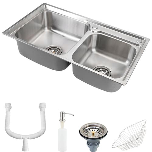 Cuba - Cesto escorredor - Dosador de detergente 300 ml - 2 Válvulas de escoamento - kit acessórios de instalação - Placa de reforço para Torneiras gourmet - Sifão