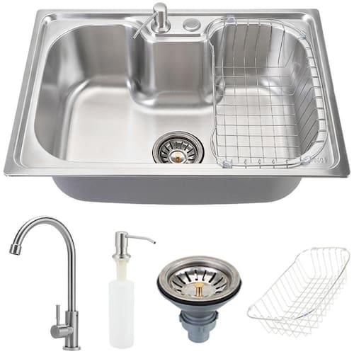 Torneira Aporé - kit de parafusos de instalação - Cuba inox Carajás - Cesta escorredor - Dosador de detergente 300 ml - Válvula de escoamento - kit acessórios de instalação - Placa de reforço para Torneira gourmet.